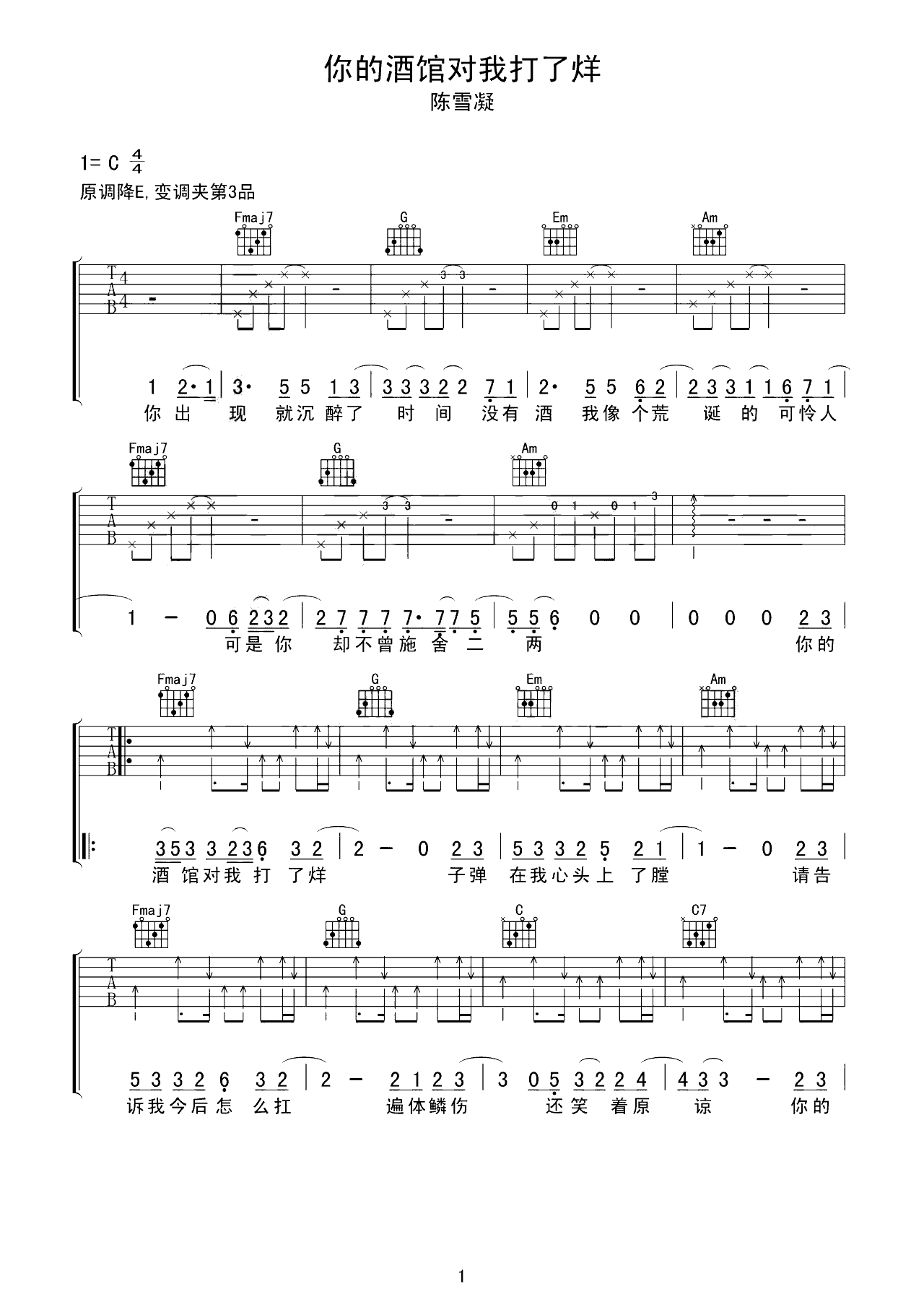吉他谱 | 热门弹唱《你的酒馆对我打了烊》