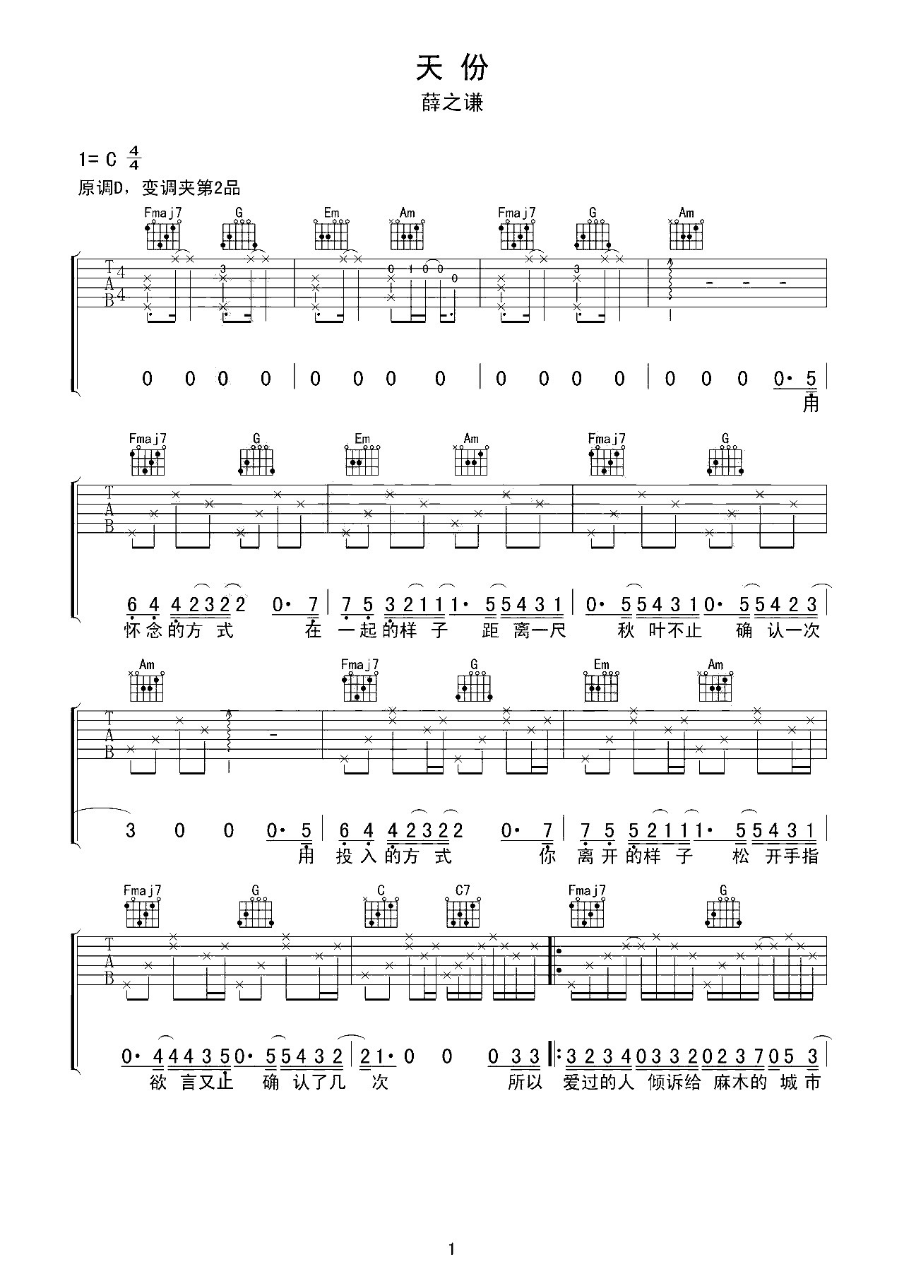 性空山吉他谱 陈粒 C调弹唱谱 图片谱高