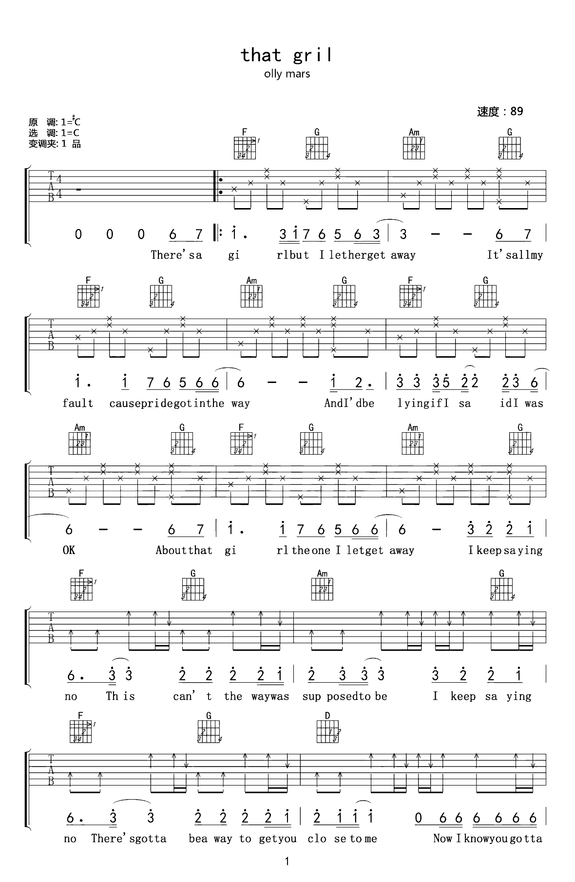 带我走吉他谱_沈以诚_G调_弹唱六线谱