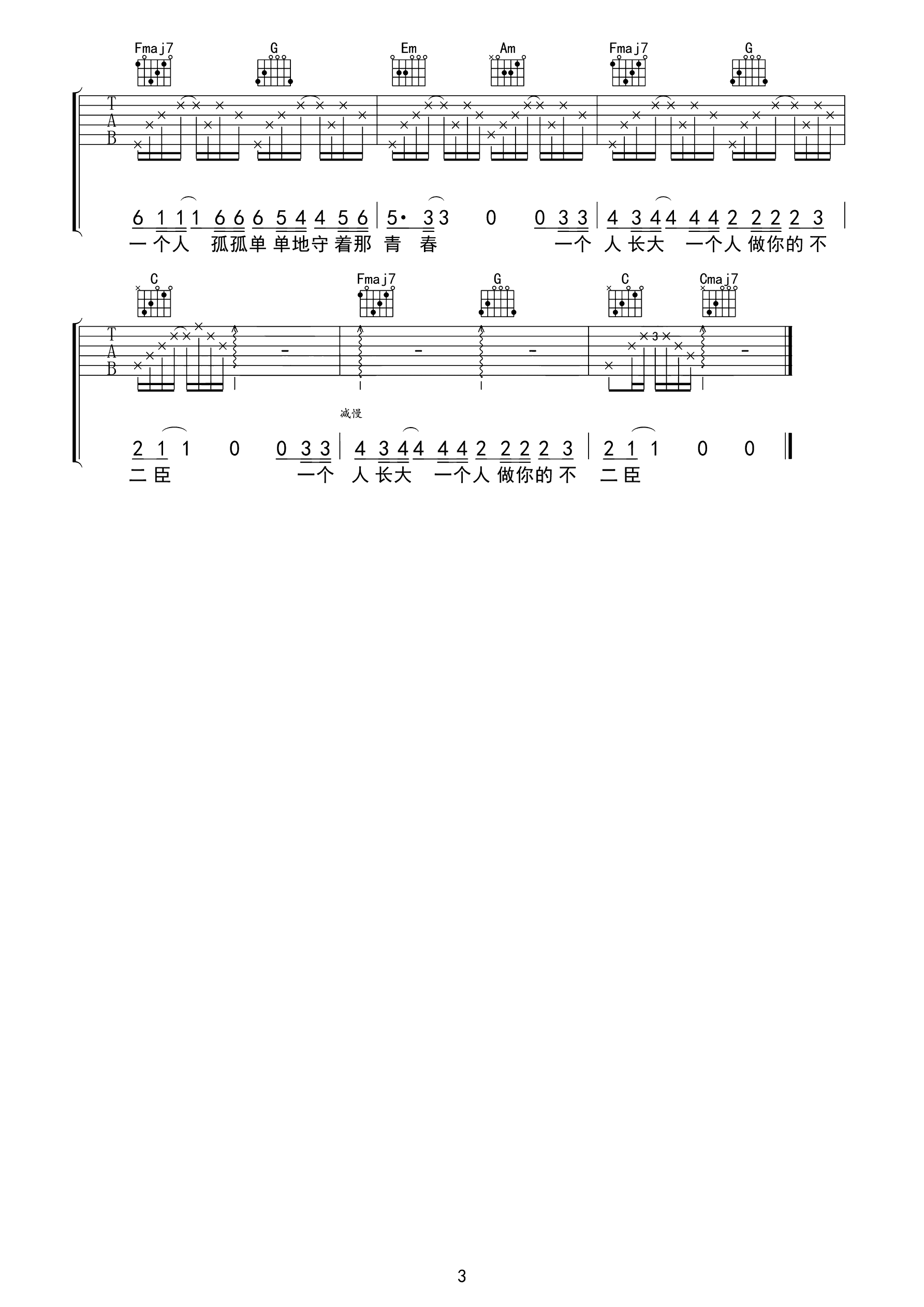 一辈子的十分钟吉他谱_李健_G调六线谱(