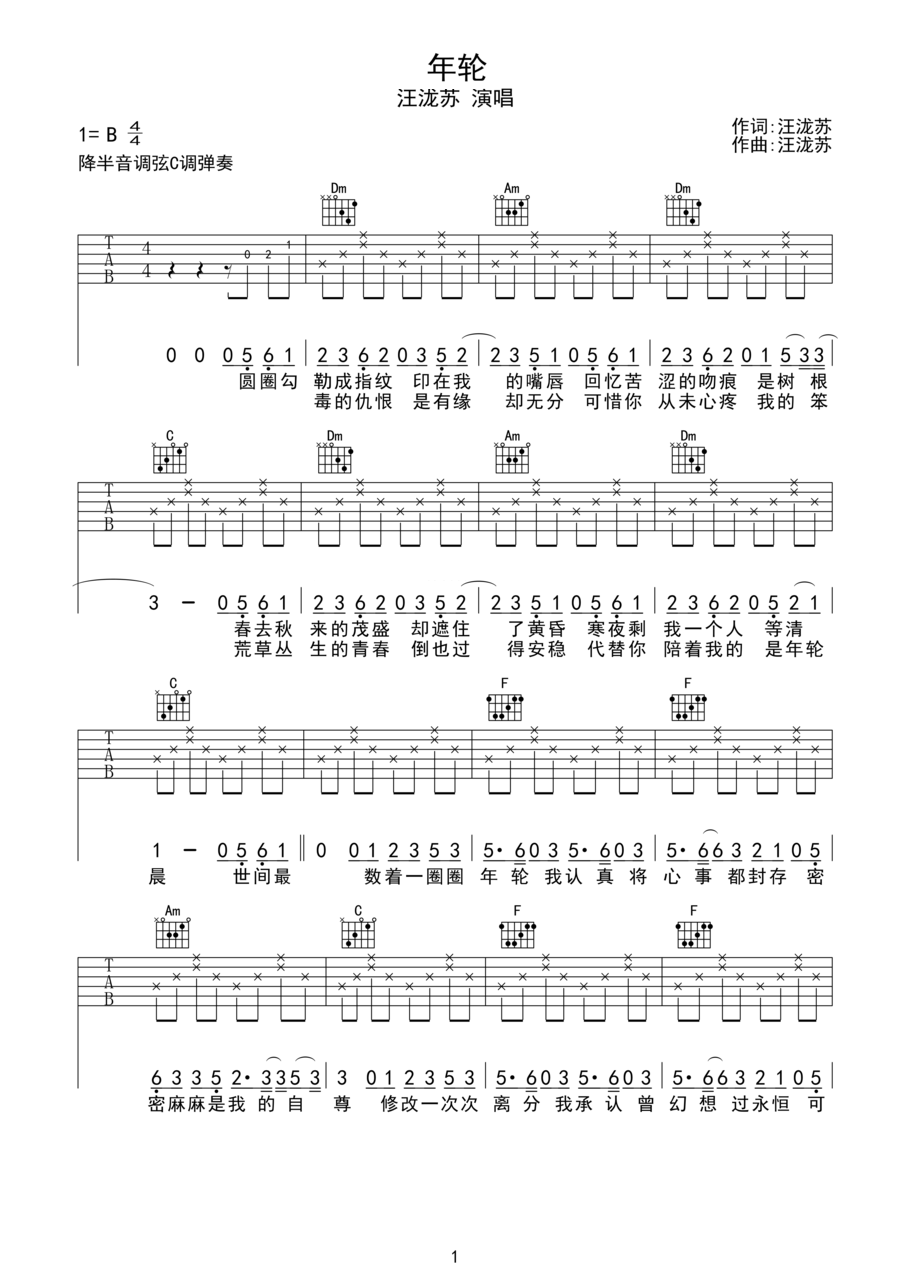 吉他谱 | 入门弹唱《年轮》