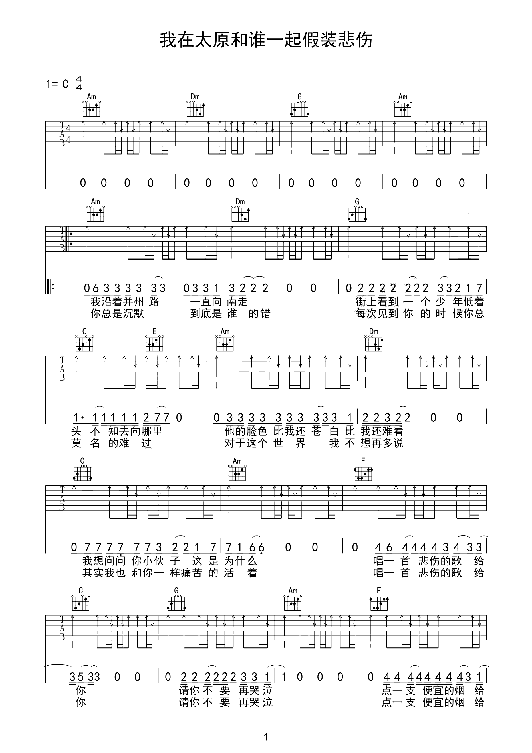 吉他谱 | 热门弹唱《我在太原和谁一起假装悲伤》