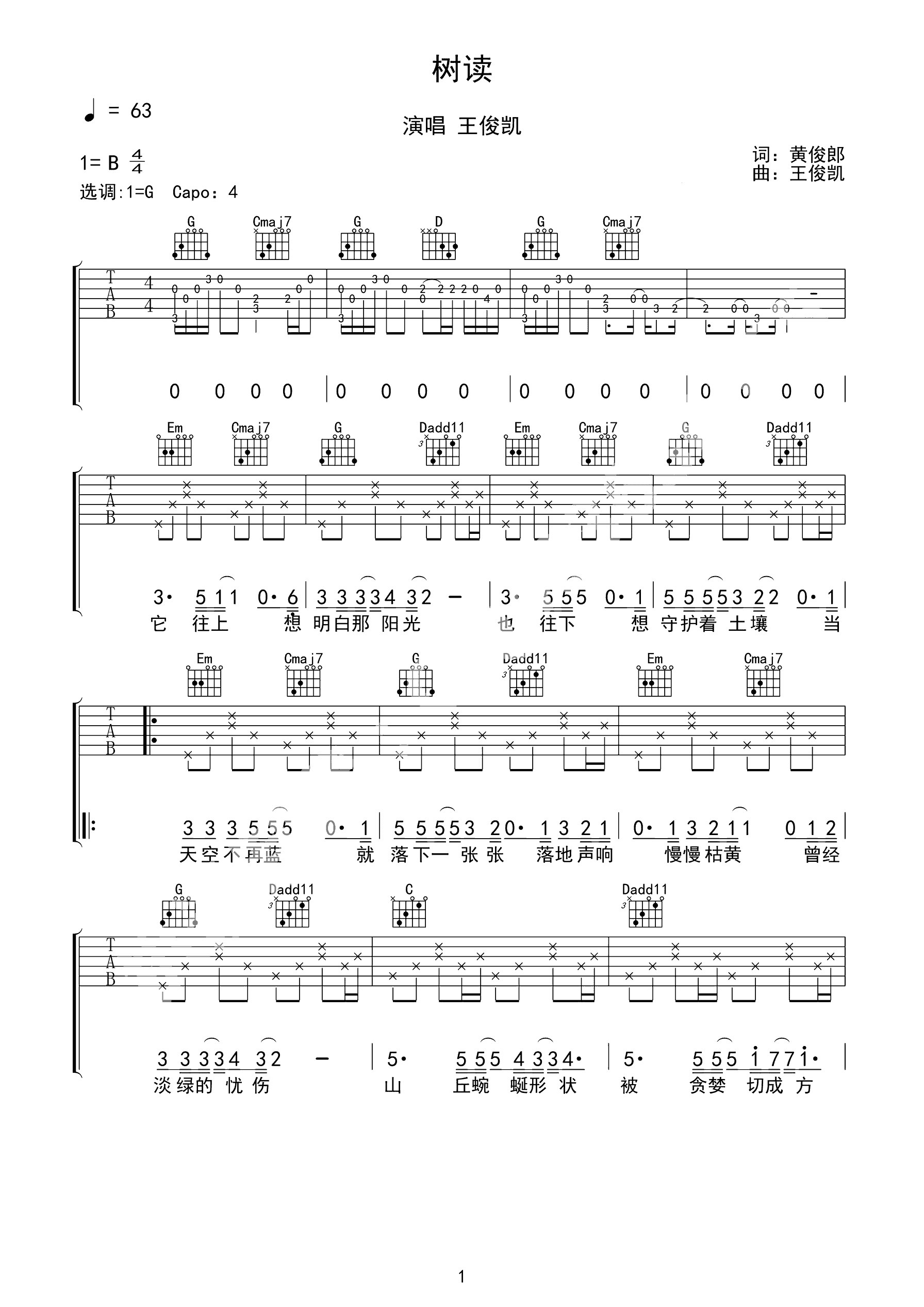 陷阱吉他谱 王北车 C调和弦弹唱谱 抖音