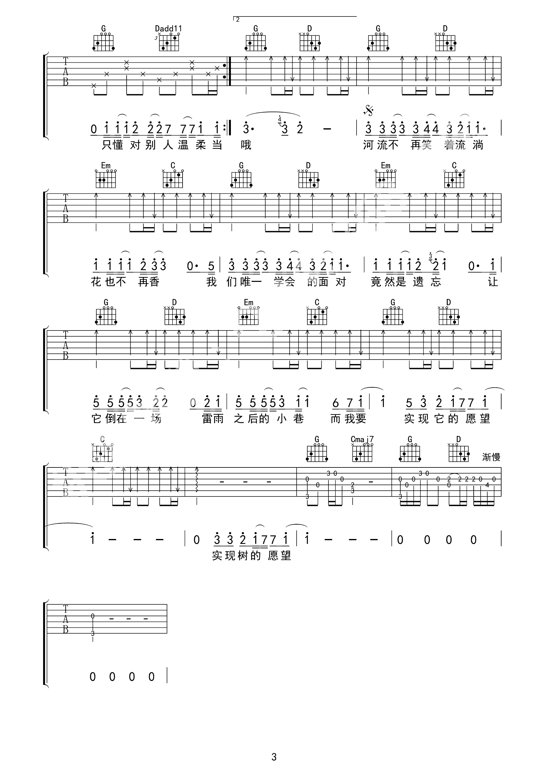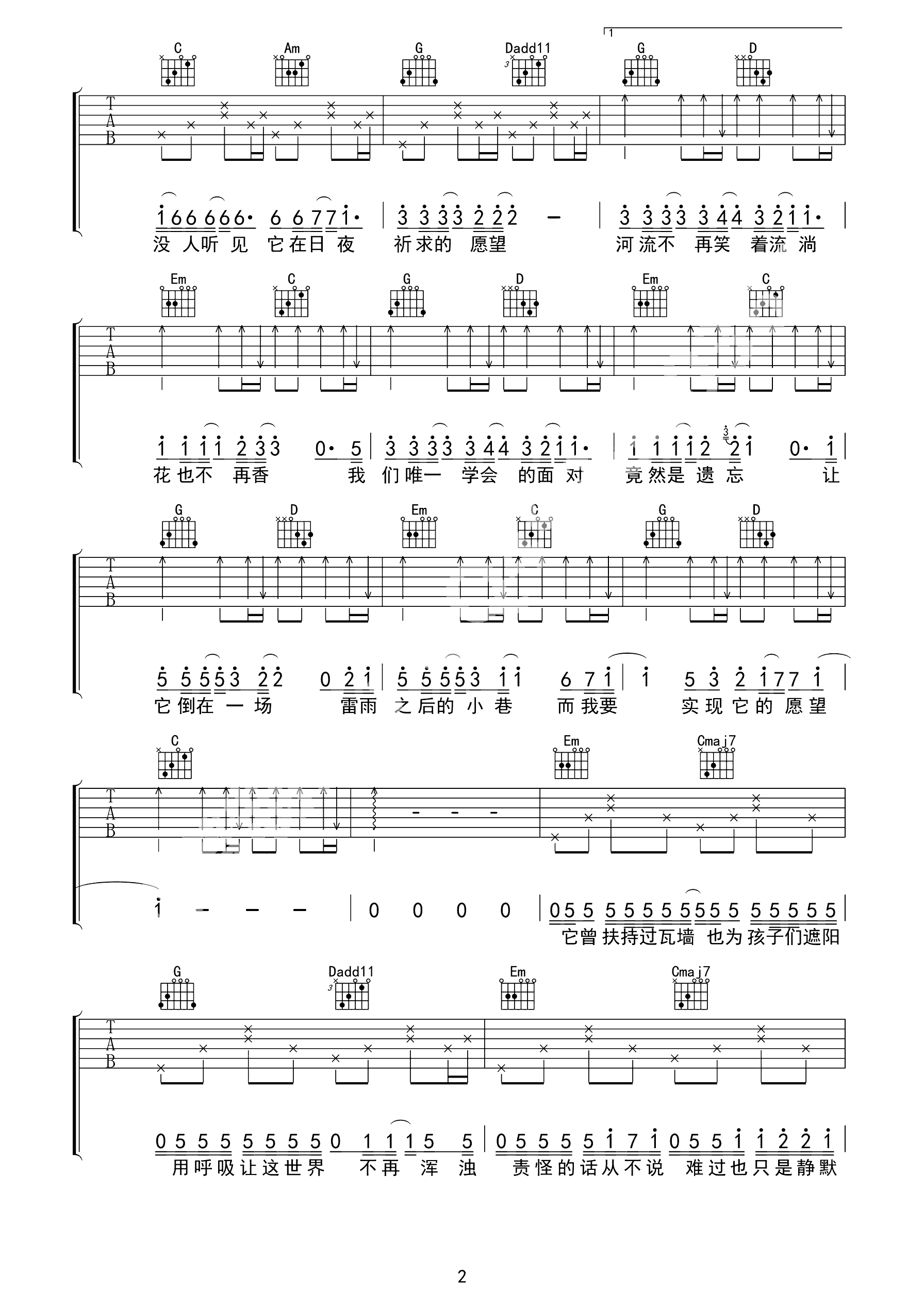 往后余生吉他谱 C调带前奏版本 马良 抖