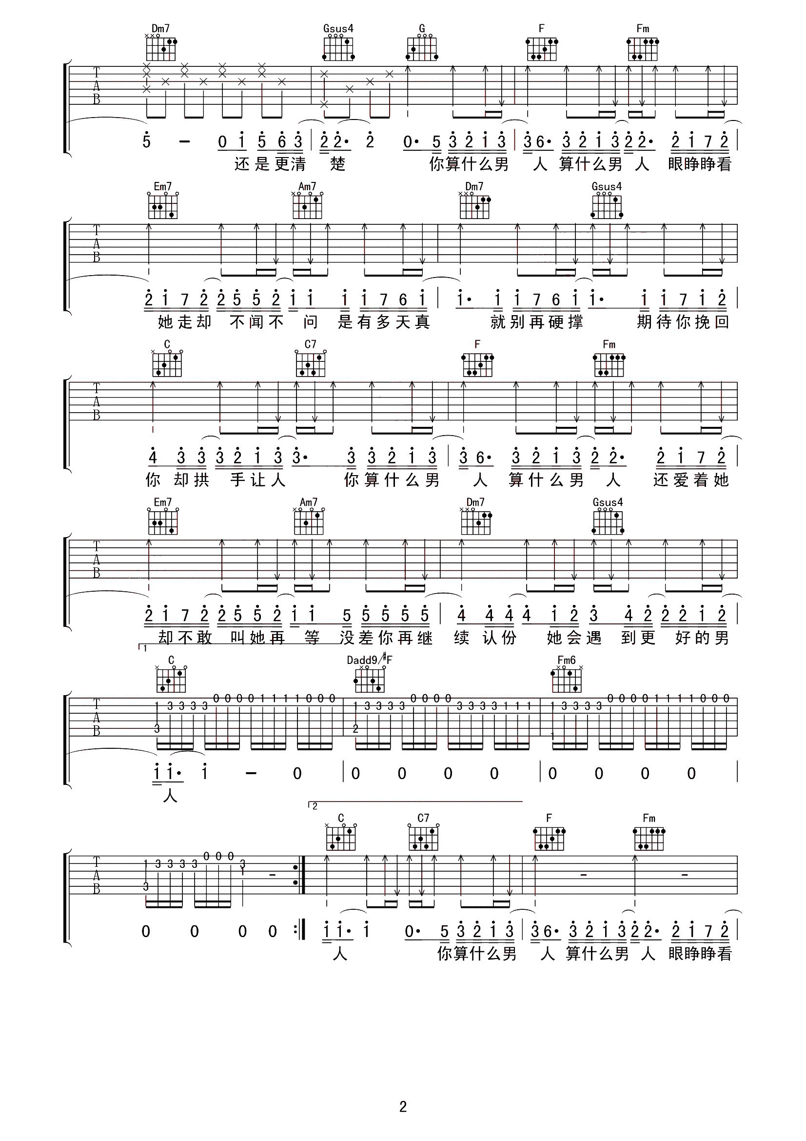 王大毛《去年夏天》吉他谱 高清弹唱谱