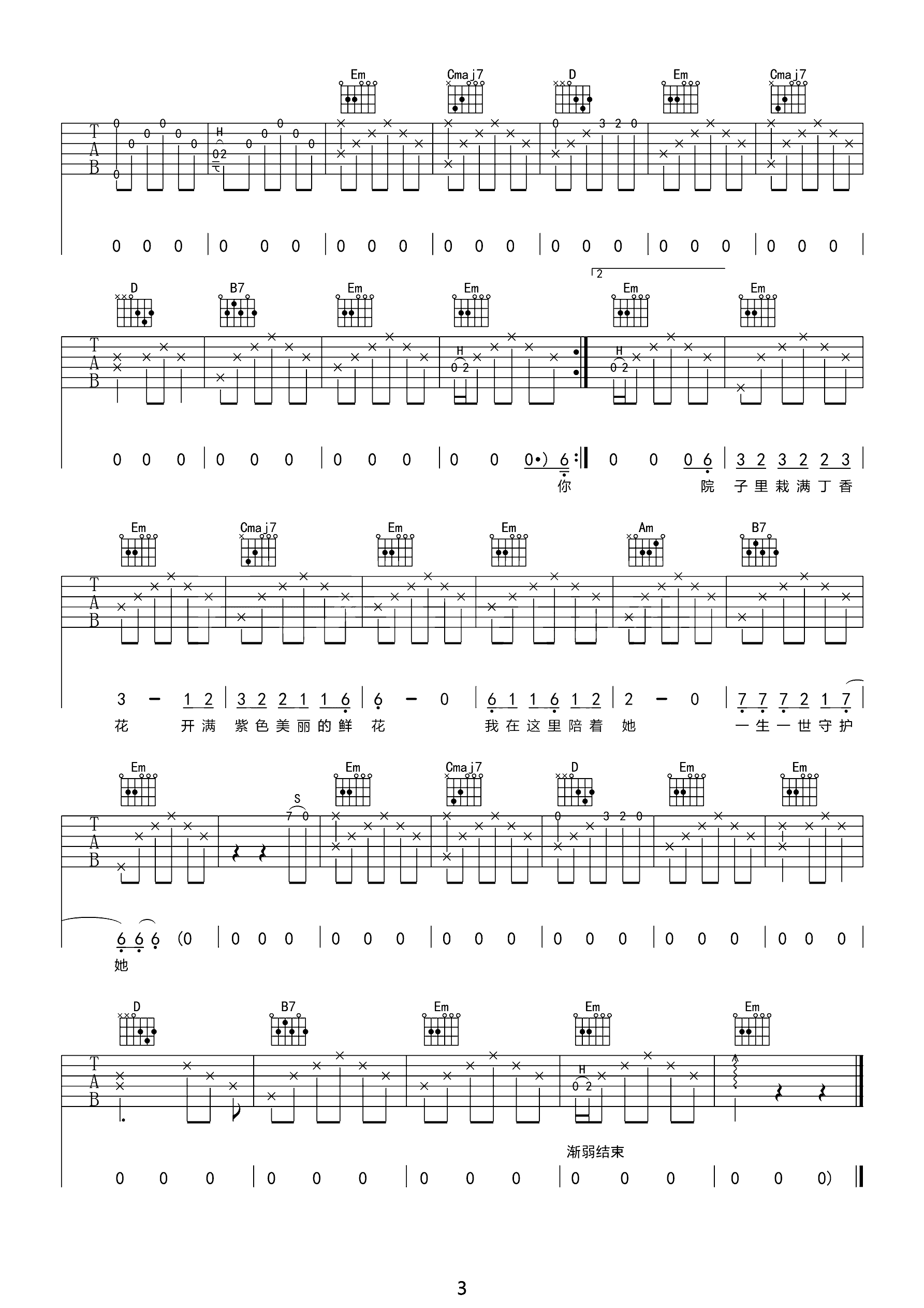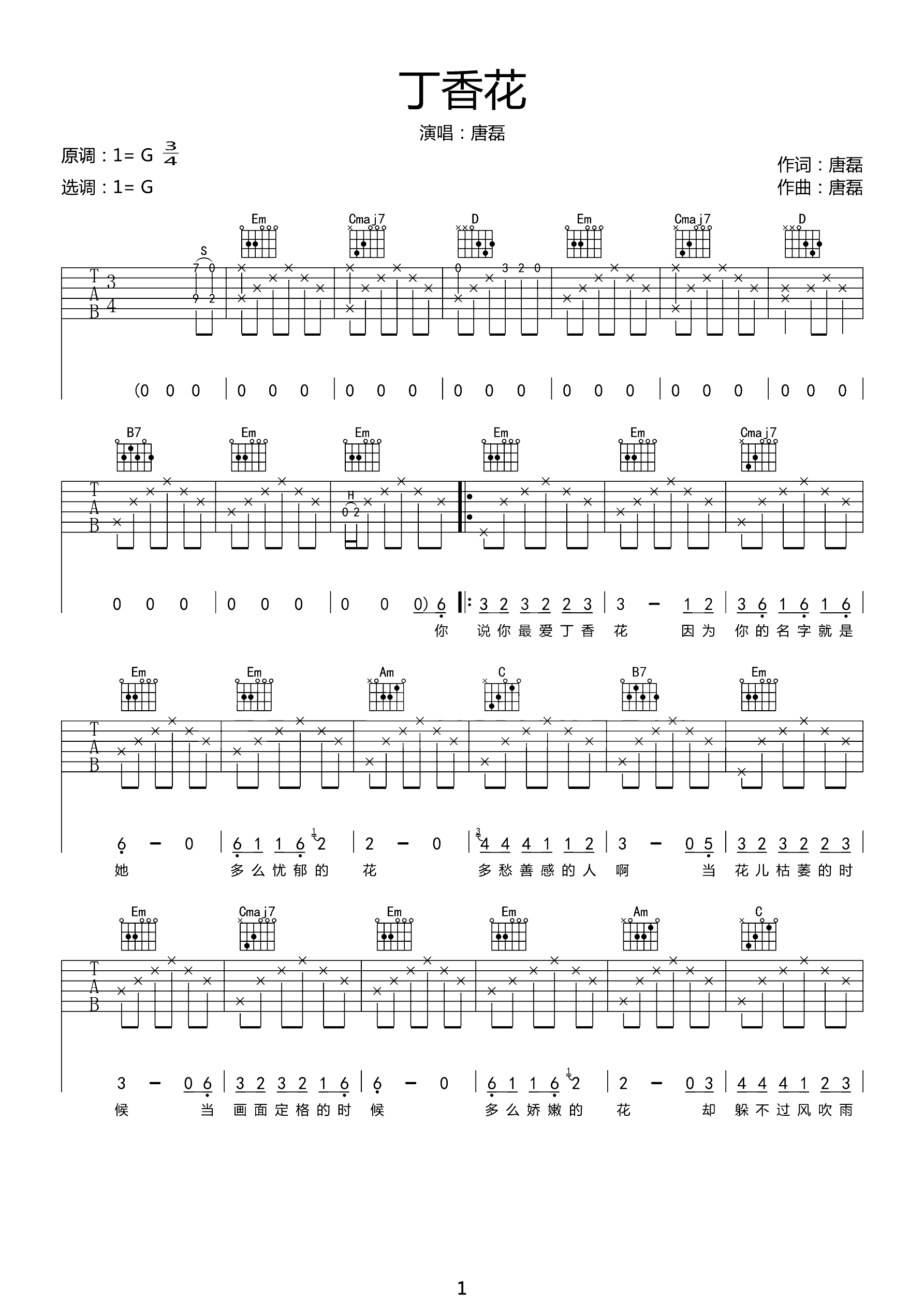 吉他谱 | 热门弹唱《丁香花》