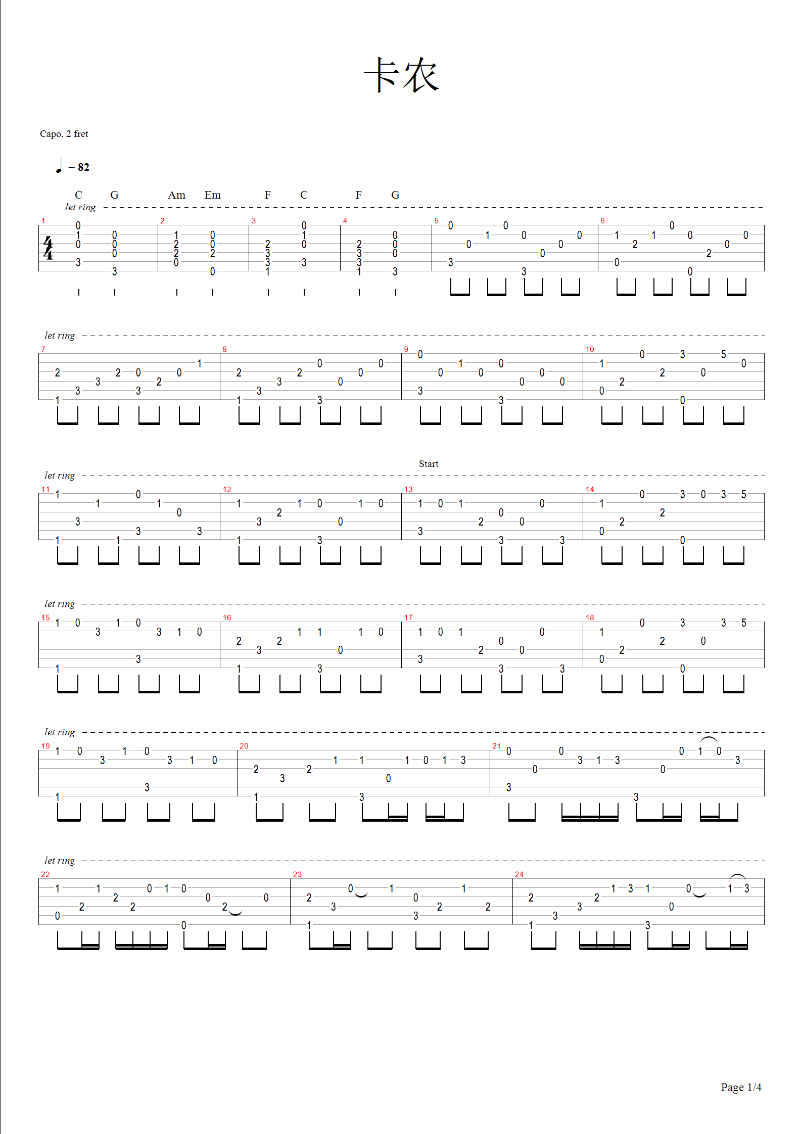 吉他谱 | 经典指弹《卡农》二品