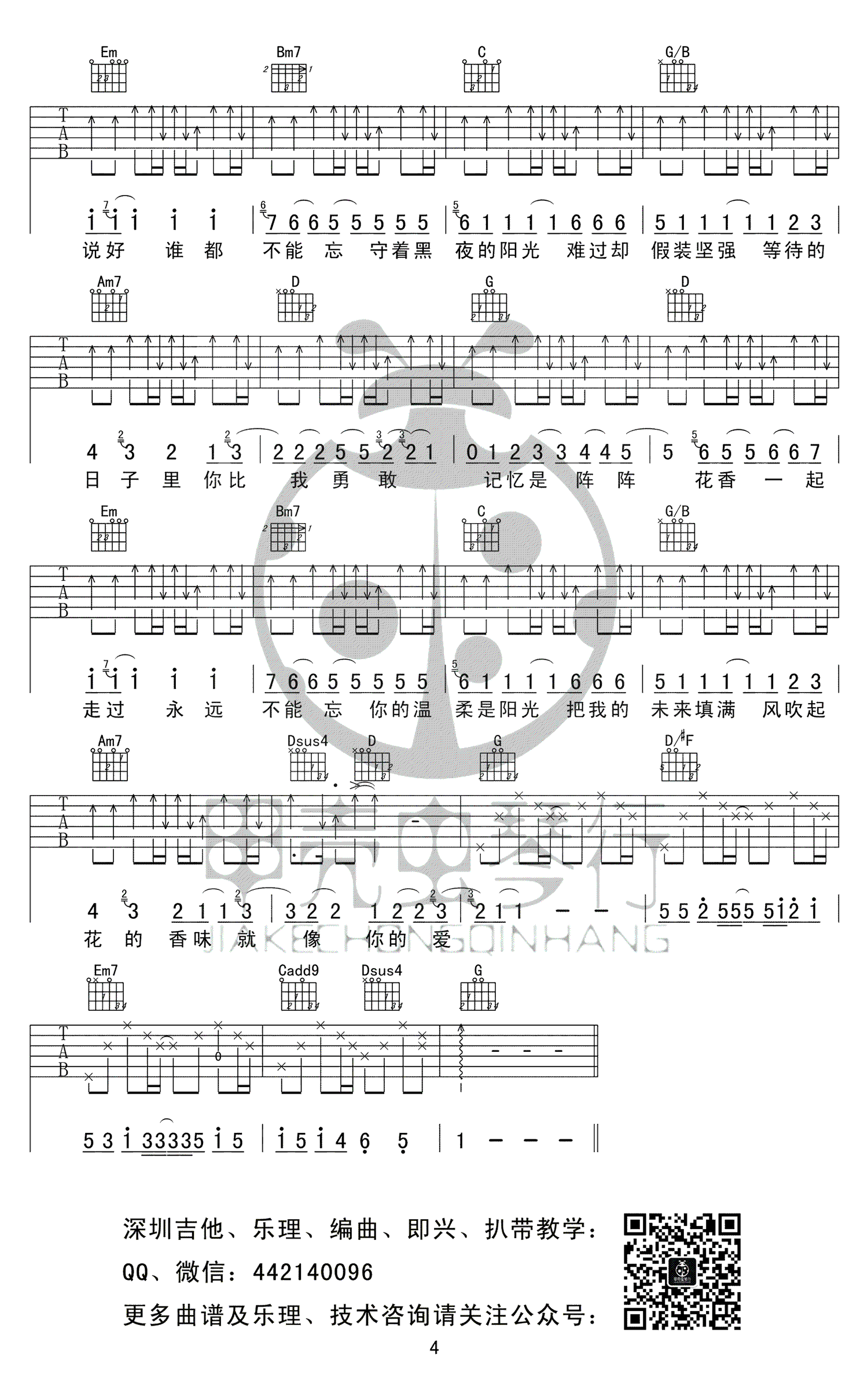 花香吉他谱 周传雄VS许绍洋《花香》六线谱 G调弹唱谱